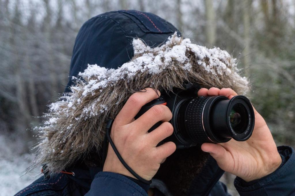 Weitwinkel betont Weite und Schichten, Tele isoliert Silhouetten. Ein Polfilter hilft Reflexe zu zähmen, sanfte Verlaufsfilter balancieren Himmel. Nimm leichte Alternativen mit, damit du länger flexibel bleibst. Welche Brennweite nutzt du am liebsten im Nebel?